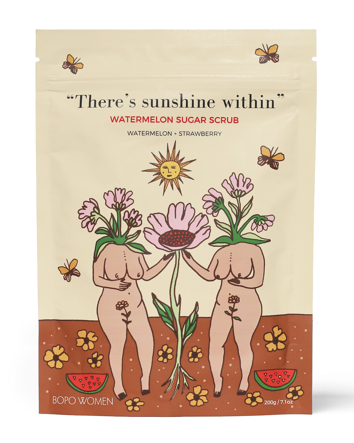 The Watermelon Sugar Scrub is a refreshing nutrient rich super scrub to help you kickstart the day. Skin healing superfoods like watermelon oil, strawberry powder and azuki beans are blended with a soothing natural exfoliant base to leave your body feeling deeply moisturised and smelling like a dream, long after you use it.