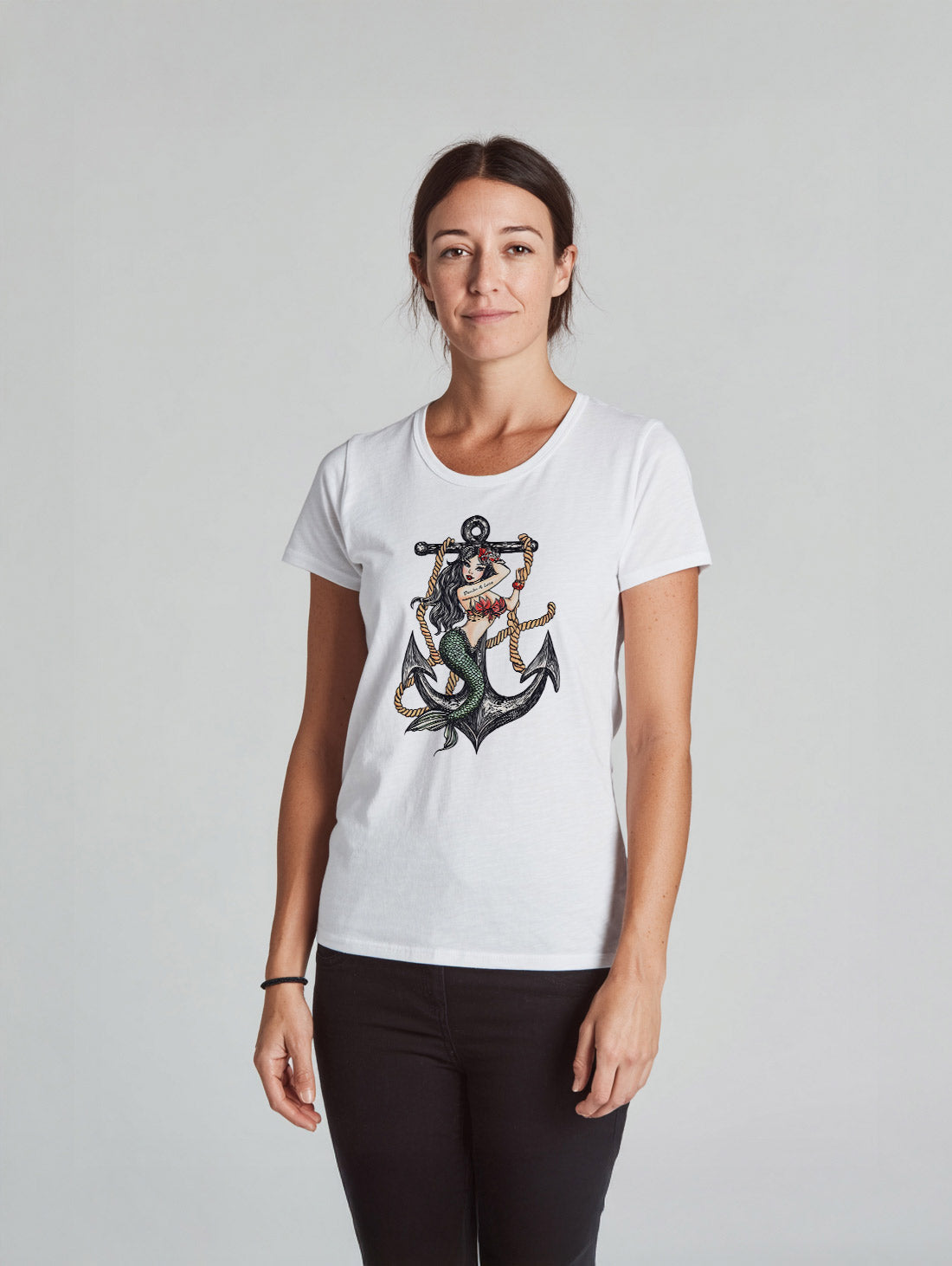This Denim & Luxe Mermaid Anchor tee is bursting with personality. Its comfortable fit and short sleeves are ideal for exciting escapades, especially when worn with your favorite bottoms.