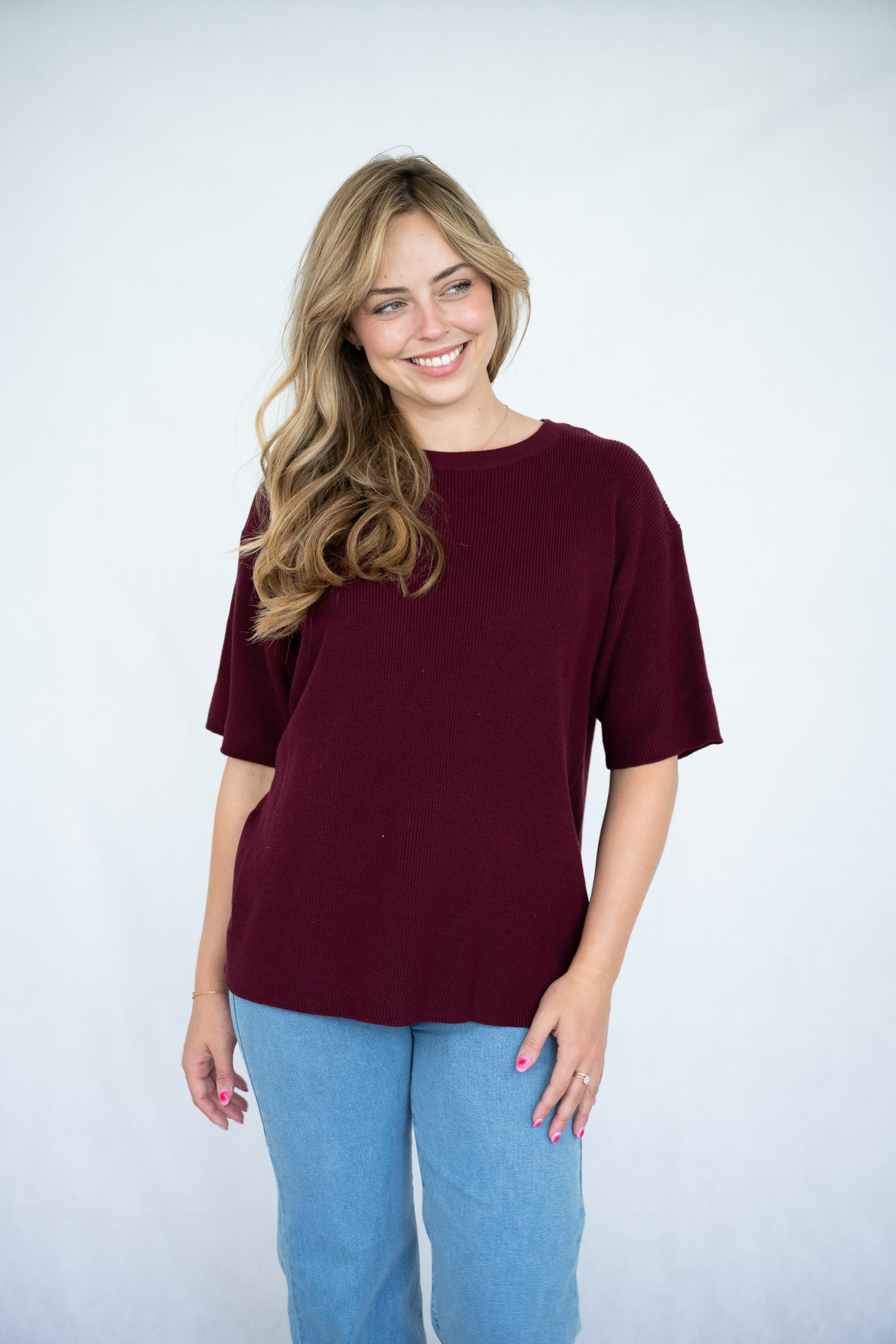 Great weight short sleeve knit top, perfect for autumn or as a layering piece as the weather gets a bit cooler. Looser fit, its super cute for work or on the weekend with your favorite skirt or jeans.
