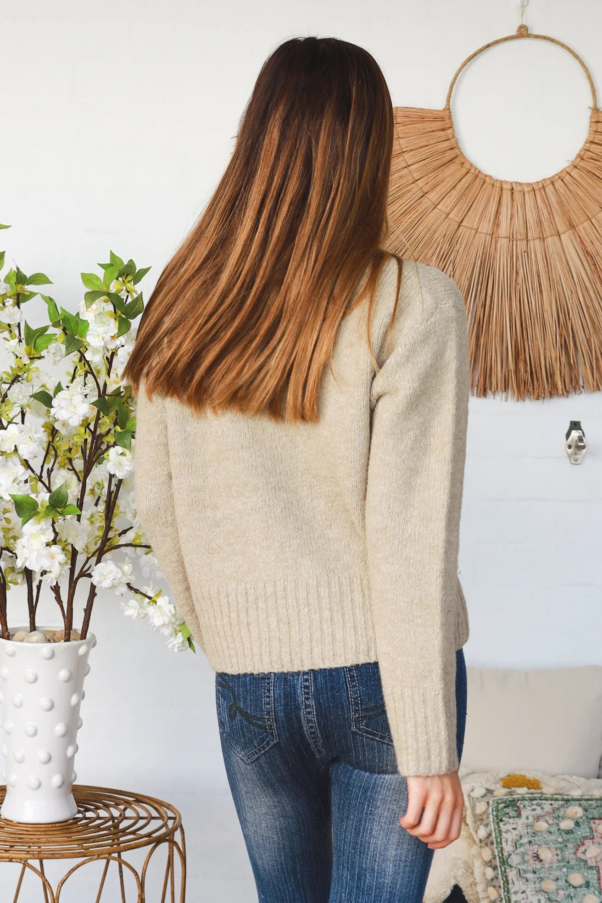 Add a touch of sparkle to your everyday look with this cozy V-neck knit. Featuring gold sequin diamond details, it’s equal parts chic and comfortable.